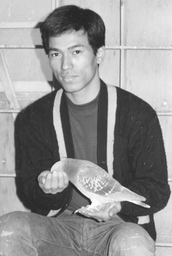 俺は佐和という所から、一千二百羽位の仲間と一斉に放鳩された。なかなか方向判定がつかず、途中何度も途を迷いながらも一生懸命飛び続け、主人の待つ鳩舎へと急いだ。一時間半位飛び続けると、常も舎外で見なれた景色が目に写ってきた。そのはるか向かうに俺の鳩舎が見えてきた。スピードを上げ、鳩舎の上にさしかかった。そこで二、三回せん回して降り、トラップをくぐり、一気に水を飲んだ。やっぱり主人は俺を待っていてくれた。だが俺の足についているゴム輪をとってくれ様とはしなかった。得意になっていたのに、少々不機嫌になってしまった。でも、主人は、普段より余計に麻の実や小粒のエサをくれたので、すぐに忘れてしまった。いささかげんきんな俺であった。