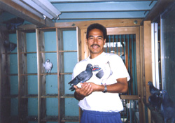 ところが一週間もたたないうちに今度は、七百K地区ナショナルレースという非常に大羽数が参加するレースに出されてしまった。このレースは悪天候で、ましてはじめての海越レースであった。俺はこの時ばかりは何度も他鳩舎の屋根に降りてエサをもらおうと思った。が、俺の帰りを待つ主人の事を考えると頑張らずにはいられなかった。二日目の夕刻、やっとの思いで鳩舎にたどりついた。そんな俺の気持ちとは別に、主人は待っていてくれなかった。あげくのはてに俺の巣箱は、他の鳩に取られてしまった。俺はヤツアタリにその鳩と大変なけんまくでけんかを始めた。余りにもはげしい音を立ててしまったので、主人が驚いて鳩舎に上がって来た。