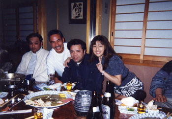 | 左より御座氏・蔦井氏(北海道)・安澤氏・相原氏 | 相変わらずクールな能城氏 (二次会会場はトワイスにて) |